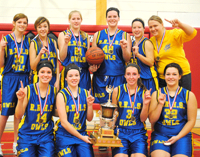 RRHS Sr. girls basketball team won NorWOSSAs last Wednesday in Kenora, defeating the hometown team, St. Thomas Aquinas Saints 34-31. This earned the OWLS a berth to NWOSSAs this Thursday and Friday to play Marathon in the best out of three games. If they win there they go to the All Ontarios! Back row, l. to r., Megan Armstrong, Hailey Desserre, Myan Miller, Emily Whetzel, Victoria Clifford and Coach Rebecca Tolen. Fr. row, Jessica Haw, Shauna Moen, Skylar Aprin and Maria Vandenbrand.
