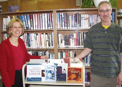 RR Public Library received a donation of books from the NWO End-of-life Care Network committee to raise awareness about palliative care in the area. At left is Assistant Librarian Brig McGreevy and NWO Com. member Hal Wilhite who presented the books to the library Monday.