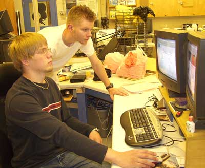 Vince Scott, seated, and Anders Moen, clicked their way to the top of a field of more than 2,200 students in the annual Sprott Business Competition hosted by Carleton University since 1987.