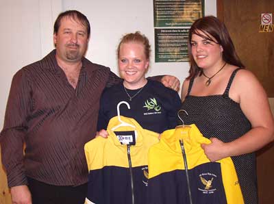 Coach Don Gall presented Hillary Hansen and Chantel Heyens with Gold Jackets for excellence in Badminton throughout their high school careers.