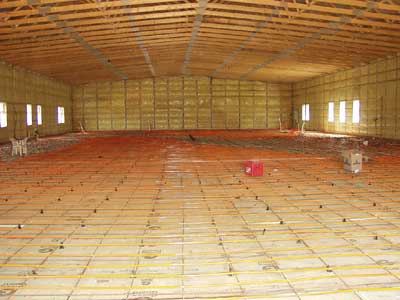 The inside of the new RR Evangelical Covenant Church with all 14,000 feet of heating lines installed thanks to the help of the missionaries last week.
