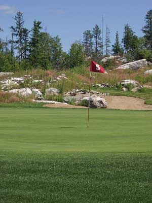Many of the holes at Spruce Creek have been built around the natural hazards of the Canadian Shield. Surely area golfers will find this appealing and challenging.