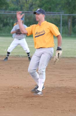 Rainy River pitcher Murray Armstrong is seen pitching against Sight and Sound last Thursday in Fort Frances. It was Rainy River’s last game of the playoff season as they were eliminated with the close loss to the Fort team. This weekend Rainy River plays host to a number of fastball teams as they host their annual tournament here.