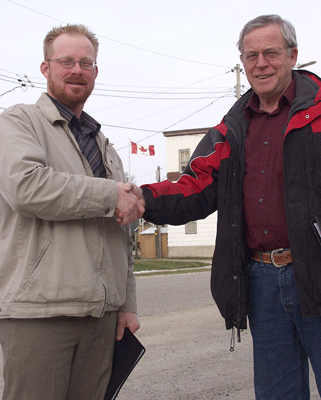 Strategeic planning committee member and town councillor Gord Armstrong, right, welcomed Anthony Mason, left, aboard last week as the town's new economic development officer/town coordinator.