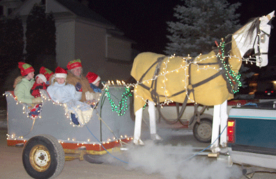 Don Fraser and his grandchildren showed off their one horse open sleigh in the parade.