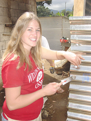 Miriam Mast, 15, otf Rainy River is seen here helping construct one of 15 new homest she and seven others from this area travelled to Guatemala to build recently.
