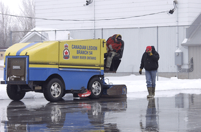 With the growing popularity of traditional "Pond" hockey it seems that outdoor rinks are popping up everywhere lately. Rainy River is no exception. The Rainy River Recreation Board's staff, Mickey Gustafson (on the ice maker) and board member Walter Wagner, were busy before Christmas making this outdoor rink just west of the indoor RR arena. It is free of charge for all to use.