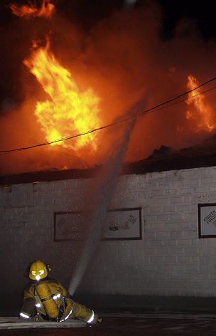 This lone firefighter held their post for a long time fighting the flames that gutted Susan's Corner Store early Tuesday morning in Rainy River.