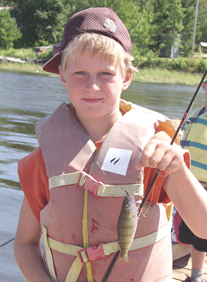 Patrick Vogan, 7, repeated as Kids' Champ this year. He is seen here with one of the seven fish he caught that won him the title.