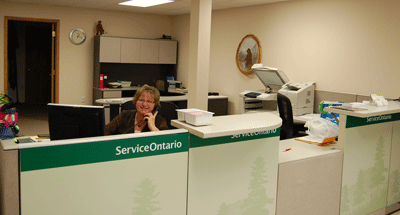 The Rainy River Service Ontario office has noticed a big increase in the amount of traffic it is getting at its new location. Sheri Pirkl is seen here in the new office also located in the former Lowes Furniture building.