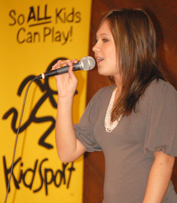 Ericka Tymkin sang her heart out to help raise money for RR KidSport at their Variety Show Sunday.