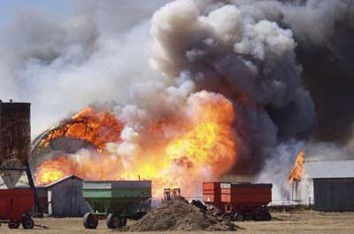 This shot was taken at 2:33 p.m. last Thursda just as the east wall of the milking barn at the Herman Krahn Farm collapsed.